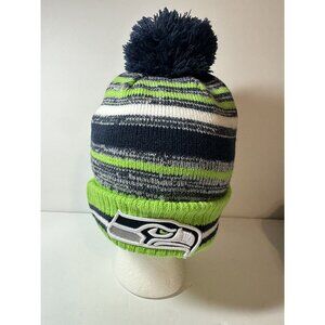 Keep warm in style with this pre-owned New Era Seattle Seahawks winter knit hat cap. Excellent condition, green, one-size-fits-all, perfect for any NFL fan.