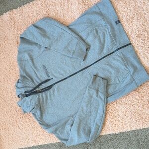 Excellent condition thick gray, hooded sweatshirt with drawstring.