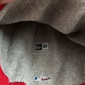 A stylish one size fits most fleece lined Washington Nationals knit beanie, perfect for showing team spirit during the colder months. This vibrant red beanie features the Nationals' iconic "W" logo embroidered on the front. Ideal for baseball fans, this beanie is a great way to stay warm while supporting your favorite team. Pre-owned condition--see all photos for wear. Smoke and pet free home.