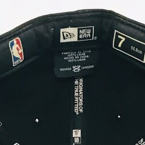 M9 Hat/Cap New Era 59FIFTY China Adult Fitted 7 or 55.8cm Miami Heat Logo on face in goldwhitemaroonblack plus NEraLogo on side in maroon plus NBA logo on rear in god maroon / Black hat with maroon top button and underbill black 100% Wool small knick in brim border maroon cloth; appearing as a small white spot (see pic)