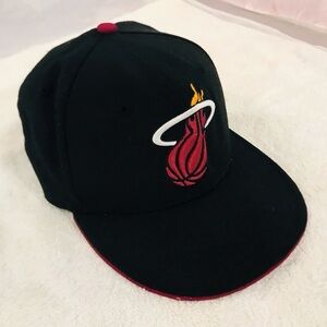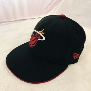 New Era's NBA Miami Heat Fitted Size 7 Black and Maroon Basketball Wool Cap
