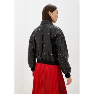 The jacket is made of quilted genuine leather with a satin lining. Straight cut model.