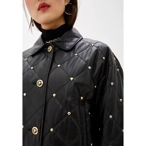New Escada Sport Lapearl Gold Panther Button Black Quilted Lamb Leather Jacket