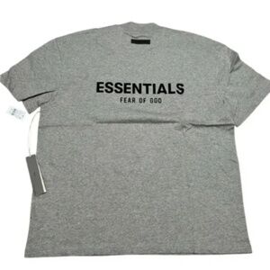 Essentials Fear of God dark oatmeal gray oversized short sleeve tee Shirt men's • Essentials Fear of God Men's shirt • Relaxed fit (oversized) • Heavyweight fabric • Essentials rubberized label on back neck • essentials fear of God on the front chest • Essentials fear of God graphic print on back • 100% cotton • 100% authentic Size Small Color dark oatmeal/gray new with tag in Essentials zip bag