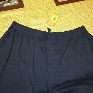 New with tags essential jersey knit jam sleep shorts size men's 2XL. They are dark navy blue drawstring with pockets in the front inseam 9 inches.