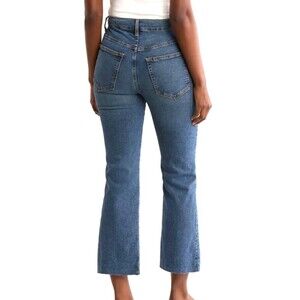 The product is a pair of Etica Anya High Rise Modern Flare Northport Denim Jeans in size 32. These jeans feature a high rise, flared style with a raw hem, making them a fashionable and trendy choice for the modern woman. Made from a blend of cotton and elastane, these jeans offer a comfortable and slimming fit with added stretch for ease of movement. The 5-pocket design and the medium wash give them a classic and versatile look, perfect for various seasons including summer, fall, and spring. Easy to care for with machine washable instructions, these jeans are a must-have addition to any wardrobe.