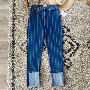 New Etica Finn Striped High Rise Straight Leg Cuffed Jeans