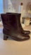 New condition Etienne Aigner dark brown leather boots with a square heel. They are size 8.5 and zip up the side. They have a couple very light surface scuffs but have not been worn outside. The sticker tag is still on the sole. Ships out fast!