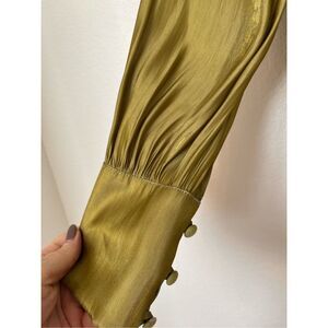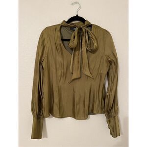 Adjustable front bow in the prettiest colors with a show-stopping sheen. Our Blythe Blouse is a classic hit. The V-neck top features an attached scarf at the neck and full sleeves that end in wide cuffs that close with a row of matching covered buttons. The fully lined style has a side zip for a curve-hugging flattering fit.