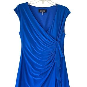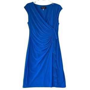 New Evan Picone Royal Blue Cocktail Cobalt Dress Wrap Ruched Flatter Ruffle Sz 8
