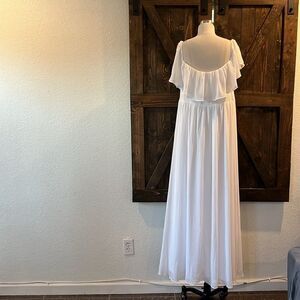 New no tag Designed as convertible neckline, with stretchy ruffle decoration, you can wear as a plain neckline with cold shoulder or squared neckline with ruffle sleeves, A slit on the skirt. This dress is perfect as your bridesmaid dress for beach wedding.
