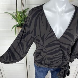 New Evereve Z Supply Clara Tropical Zebra Print Wrap Top Surplice Womens Size M