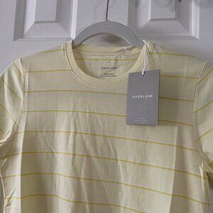 New Everlane Yellow Striped Organic Cotton Crew Neck Tee T Shirt Top Size Small