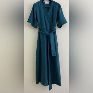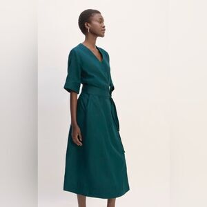 New Everlane The Wrap Dress in Linen in Dark Sea Size XS