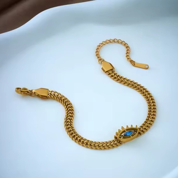 New! Evil blue eye stainless bracelet steel gold color adjustable unique