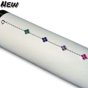 New Exclusively Fancy 925 Sterling Silver Rainbow Clover Bracelet