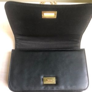 Beautiful New Express Black Quilted Faux Leather Crossbody & or Shoulder Bag. This chic handbag has an upscale look with the quilting and chain detail. This beautiful bag has a turn lock closure and upon opening the bag, it has an inner zipper. This magnificent handbag has a beautiful gold chain which can be doubled as a shoulder bag or adjusted to a crossbody bag.