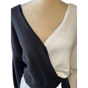 New Express Black/White Color Block Cross Over Sweater Dress Size XL78