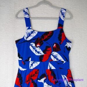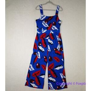 New! Express Blue Print tropical Jumpsuit, women's size L