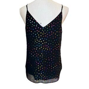 Add a pop of playful charm to your wardrobe with this adorable Express camisole! Featuring a vibrant and colorful polka dot pattern on a classic black background, this top is perfect for layering under a blazer or wearing on its own for a fun, flirty look. Brand new with tags and size small, it’s a great piece to dress up or down for any occasion. Soft, lightweight, and easy to style—don’t miss out on this cute and eye-catching top!