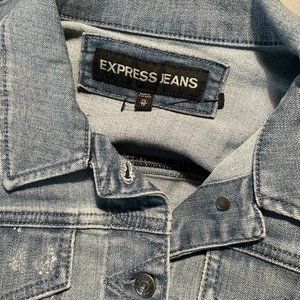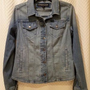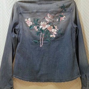 New Express Denim Jean Jacket Embroidered Floral Birds XS
