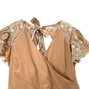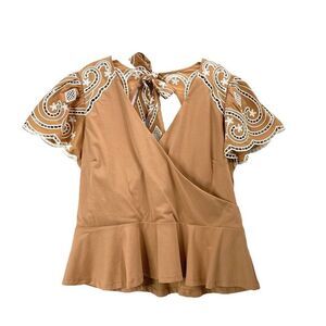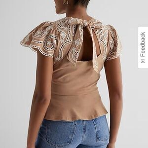 New Express Embroidered Eyelet Flutter Sleeve Peplum Top Size XL pecan tan