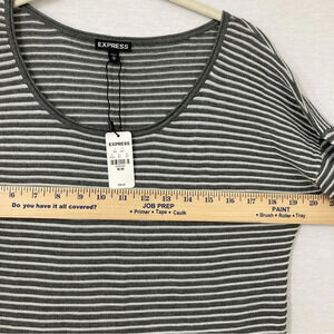 New Express Gray White Striped Crew Neck Asymmetric Hem Tunic Medium