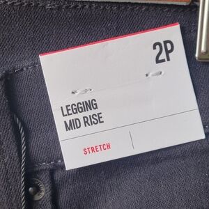 New Express Jeans Women’s Mid Rise Leggings Size 2P- Black Zip Pockets Stretch