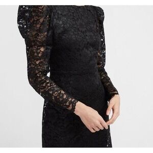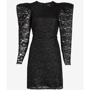 New Express Lace Puff Sleeve Fit And Flare Dress Size 0 Retail $98 Color black