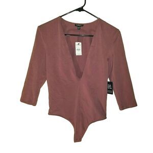 New Express Mauve Purple Thong V-Neck Bodysuit Small