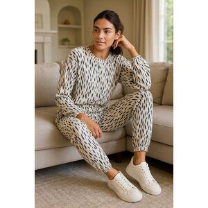 New Express Med Pants Elastic Waist High Waisted Cozy Leopard Jogger Loungewear