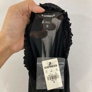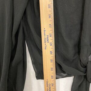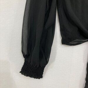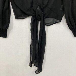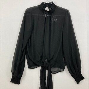 New Express Medium Black Sheer High Neck Tie Front Long Sleeve Top Romantic