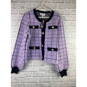 New Express Plaid Sweater Jacket Lavender Black with Gold Buttons
