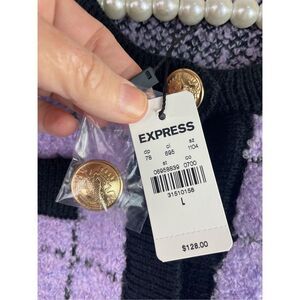 New with Tags Express Plaid Sweater Jacket Lavender Black with Gold Buttons
