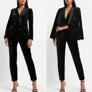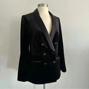 New Express Shawl Satin Collar Double Breasted Tuxedo Velvet Blazer Jacket S