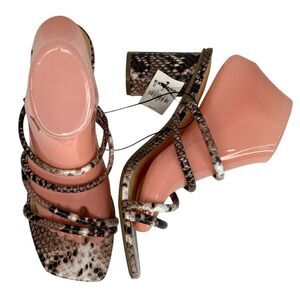 New! Express Square Toe Strap Round Heel Faux Leather Snake Print Sandals Sz 9