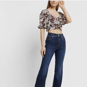 Express Women's Satin Printed Faux Wrap Tie Back Cropped Top size 6, NWT brown.