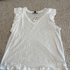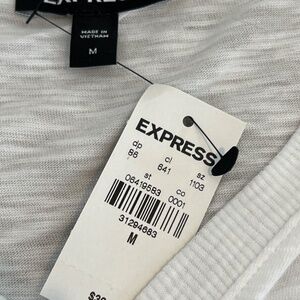 New with tags Express white cotton blend v-neck tee shirt with butterfly sleeves. Size Medium. Measurements: 21” length, pit to pit 18.5”.