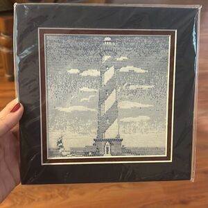 New Expression in art lighthouse tapestry art needlepoint small framed artwork bathroom art