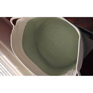 Cotton Rope Living Room Storage: The green basket is made of hand natural cotton rope. Sturdy rope storage baskets can withstand weight and regular use without wear and tear. Rope material is soft and safe for baby, kids and even pets like doggy and cat. The lg 3x opened rope baskets for organizing has no chemical odor and sharp edges, so it will not harm the floor and the kids.