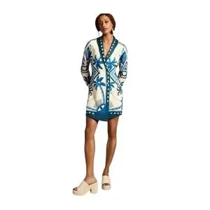 Stylish cardigan with blue and white patterns. Perfect for layering.