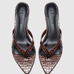 New FEMME LA Ginza Thong Slipper in Brown Croc skin kitten heel sandal open toe