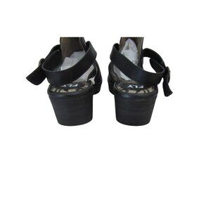 New, FLY London Leather Heeled Sandals Wena Black SZ 37 or 5.5M