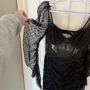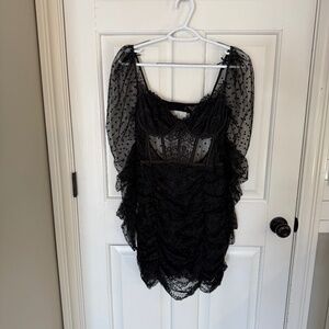 Chicblack lace dress with sheere polka dot sleeves and zipper back.  Perfect for evening wear.