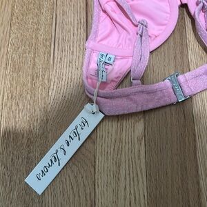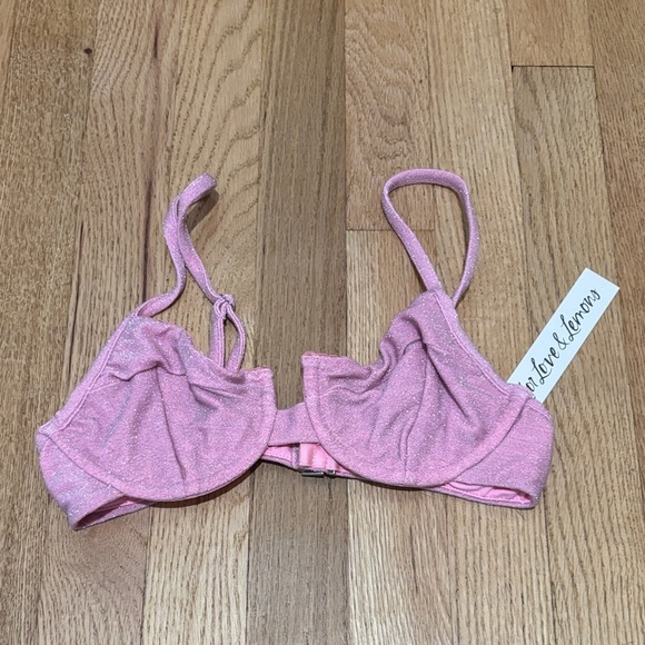 NWT For Love & Lemons sparkle shimmer bikini top. Single setting closure and adjustable straps. Bustier style with underwire for added push up.
