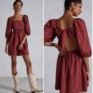 New FOREVER THAT GIRL BY ANTHROPOLOGIE Scalloped, Exposed Back Mini Dress Sz M