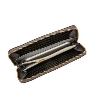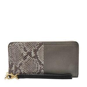New! FOSSIL Logan RFID Wallet Zip Clutch Wristlet Strap Taupe Snakeprint Black