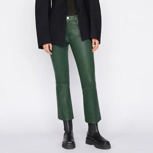 New FRAME Leather Le Crop Mini Boot Mid Rise Pants in Pine Green size 23
