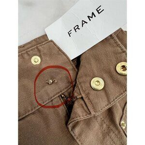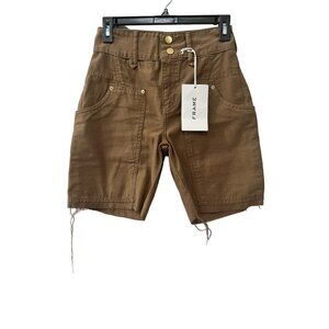 New FRAME Size 23 Twisted Utility Shorts OLIVE Green Raw Hem *Broken Button*
