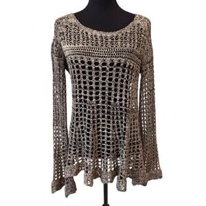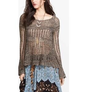 New FREE PEOPLE Brown Long Sleeve Annabelle Crochet Pullover Top Size M